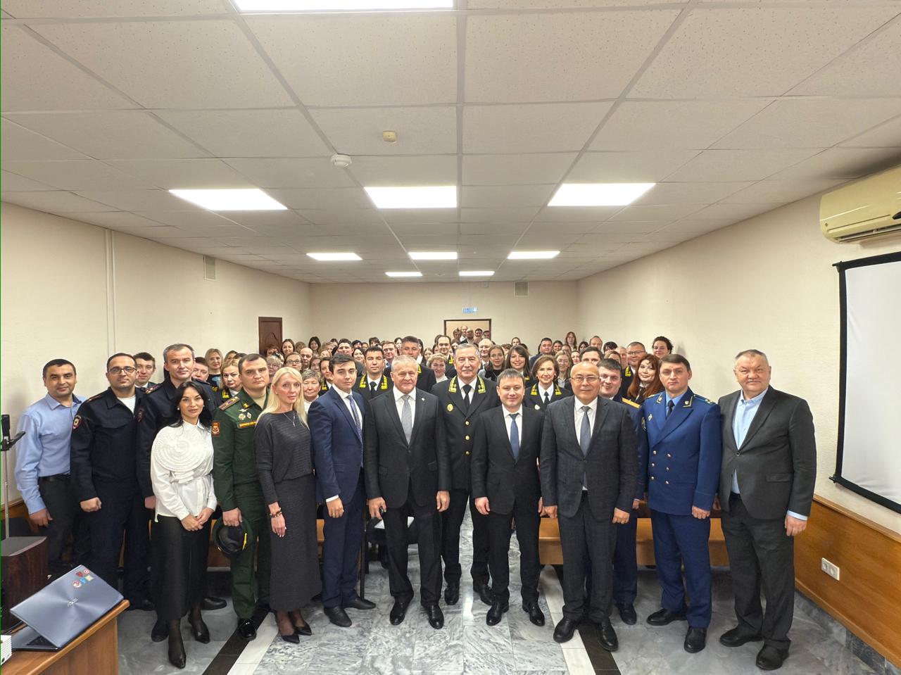Сегодня, 1 ноября 2025 года, в стенах Приволжского районного суда города Казани состоялась торжественная церемония, посвященная проводам в почетную отставку глубокоуважаемого Председателя суда, Рината Нургалеевича Сафина. Мероприятие собрало представителей высших судебных инстанций, коллег, ветеранов юридического сообщества и представителей правоохранительных и государственных органов, которые пришли выразить слова искренней благодарности и глубокого уважения. Ринат Нургалеевич имеет внушительный стаж работы в судебной системе – более 43 лет. При этом свыше 30 лет он занимал руководящие должности, будучи председателем судов. С 2014 года Ринат Нургалеевич успешно возглавлял Приволжский районный суд города Казани. Зал заседаний был наполнен атмосферой торжественности и теплоты, когда Ринат Нургалеевич, чье имя на протяжении многих лет стало синонимом принципиальности, профессионализма и беспристрастного служения Закону, принимал поздравления и напутственные слова. Среди почетных гостей, прибывших разделить этот знаменательный момент, присутствовали: Председатель Верховного Суда Республики Татарстан Азат Мансурович Гильмутдинов, Начальник Управления Судебного департамента в Республике Татарстан Зявдат Миргазямович Салихов, заместитель председателя Верховного Суда Республики Татарстан, председатель Совета судей Республики Татарстан Айдар Фатихович Галиакберов, директор Казанского филиала РГУП им. В.М.Лебедева, заместитель председателя Верховного Суда Республики Татарстан в отставке Рамиль Анварович Шарифуллин, прокурор Приволжского района г. Казани Артур Салихович Шарипов, Глава администрации Вахитовского и Приволжского районов г. Казани Альберт Иршатович Салихов, руководитель следственного отдела по Приволжскому району г. Казани следственного комитета РФ по Республике Татарстан Ильдар Фатихович Гасимов, а также начальники отделов полиции Приволжского района Динар Наилевич Сафин, Альберт Ильшатович Зарипов, Раиль Мансурович Ахметзянов. Каждый из выступающих подчеркивал выдающиеся личные и профессиональные качества Рината Нургалеевича. В своих речах гости отмечали его исключительную мудрость в принятии решений, беззаветную преданность делу правосудия, умение создавать сплоченный и высокопрофессиональный коллектив, а также неоценимый вклад в укрепление авторитета судебной власти и развитие судебной системы региона. Ринату Нургалеевичу были вручены памятные подарки как символ безмерного уважения и глубочайшей признательности за многолетний безупречный труд и служение Отечеству. Слова глубокой благодарности в адрес Рината Нургалеевича прозвучали от заместителя председателя Приволжского районного суда г. Казани Аиды Фаруковны, мировых судей и коллег. Они высоко оценили его многолетнее трудолюбие, добросовестность и исключительную ответственность в отправлении правосудия, верность профессии, а также доброжелательность и внимательность к людям. Ринату Нургалеевичу пожелали крепкого здоровья, не терять оптимизма на новом этапе жизни и успешно воплотить в жизнь все свои планы. В ответном слове Ринат Нургалеевич выразил искреннюю благодарность всем присутствующим, а также каждому сотруднику и судье Приволжского районного суда за годы плодотворной совместной работы, подчеркнув, что 
