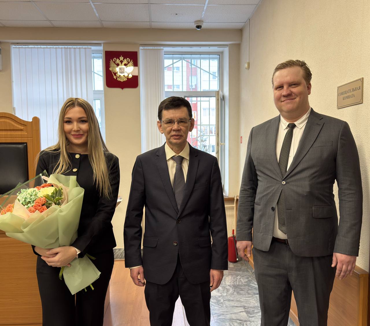 Указом Президента Российской Федерации № 992 от 29 декабря 2025 года Роман Владимирович Егоров и Алиса Салимзяновна Шарапова назначены судьями Приволжского районного суда города Казани Республики Татарстан. Сегодня, 14 января 2026 года, состоялось их торжественное представление коллективу суда. Председатель суда Булат Габдлухаевич Бариев поздравил коллег с назначением, подчеркнув их высокий уровень профессионализма, безупречную репутацию и глубокие познания в области юриспруденции. В своем обращении председатель выразил уверенность, что накопленный опыт и преданность делу позволят новым судьям успешно справляться с задачами по обеспечению качественного и оперативного правосудия.